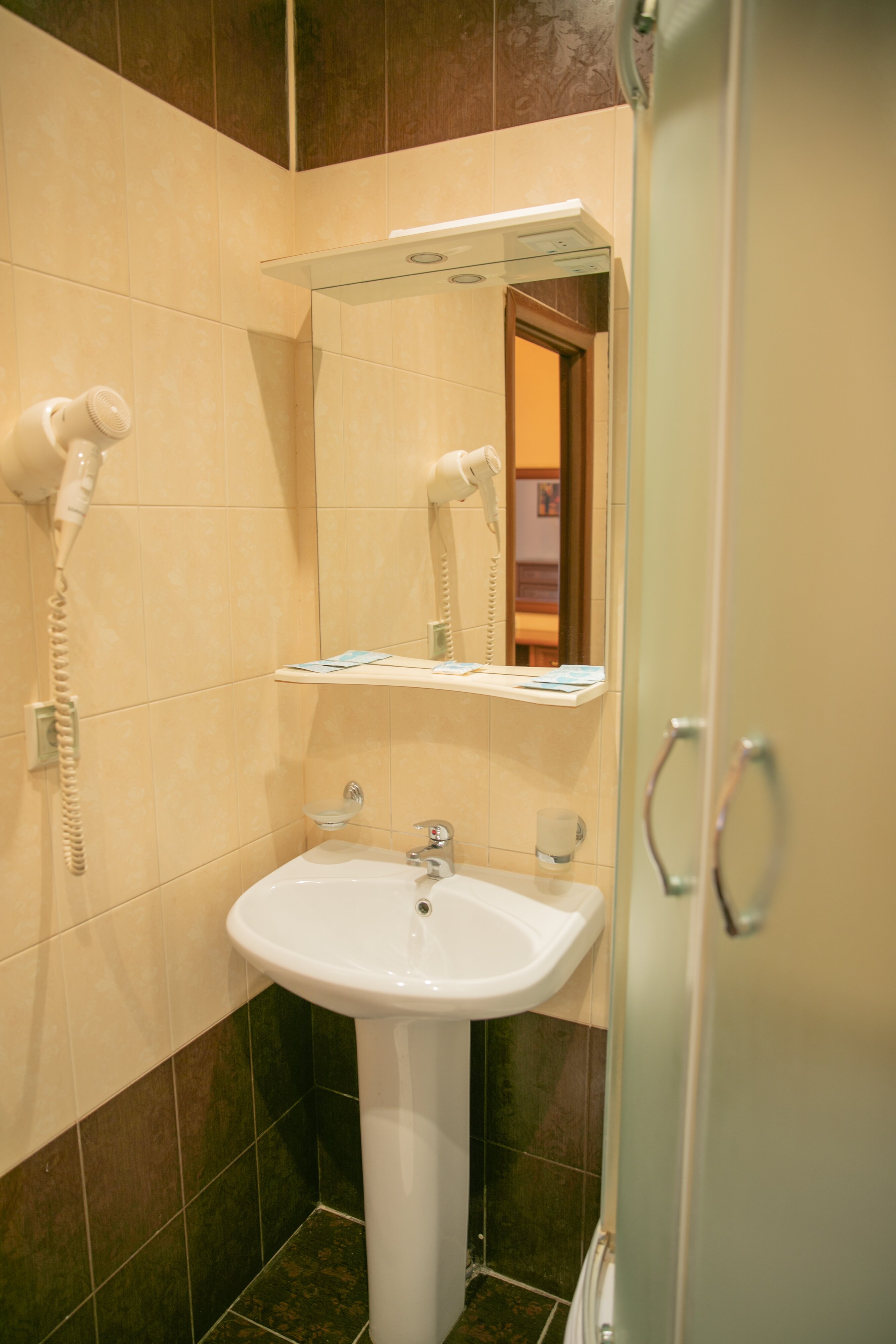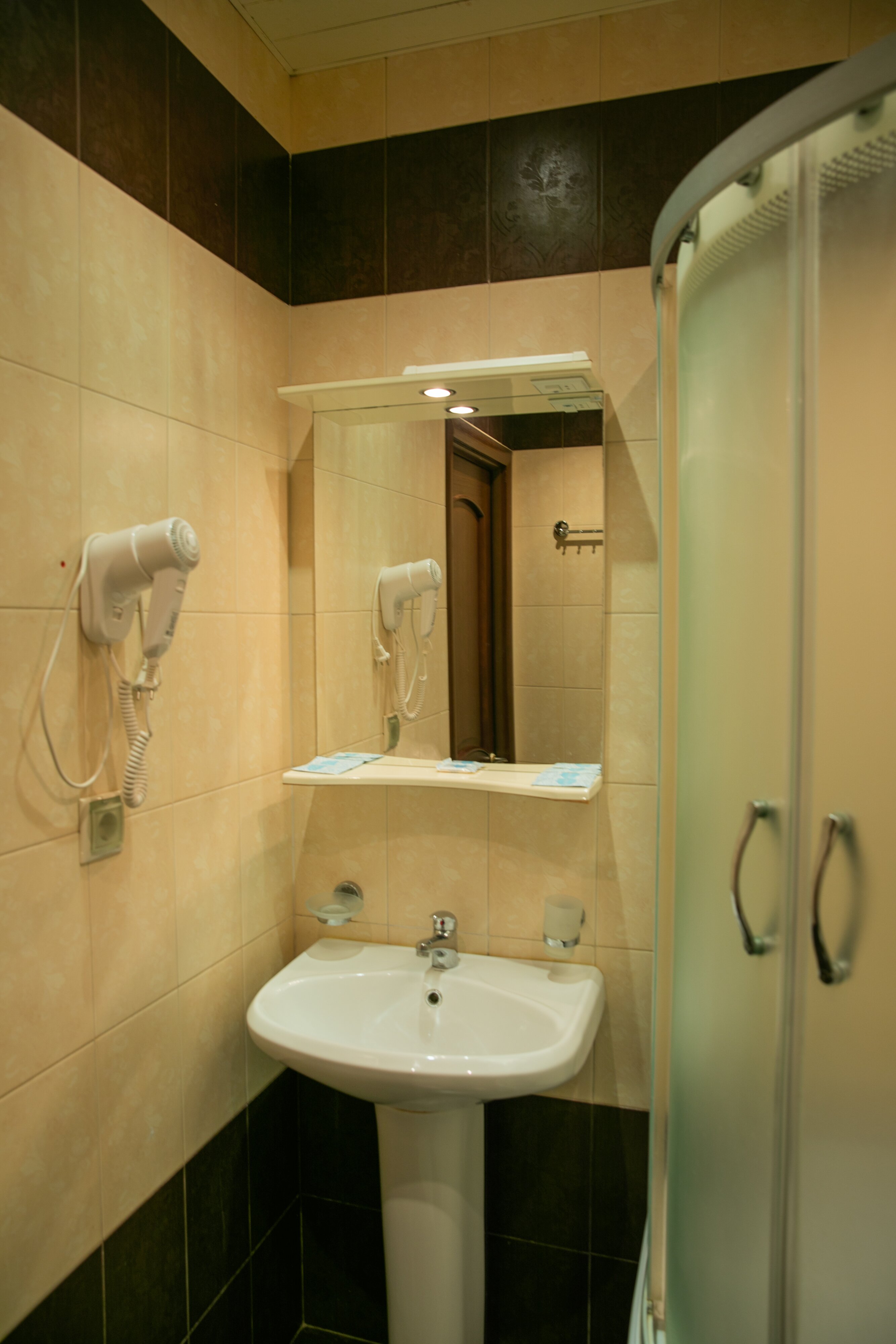 В ванной комнате есть душевая кабинка и фен, чтобы привести себя в подярок с дороги.